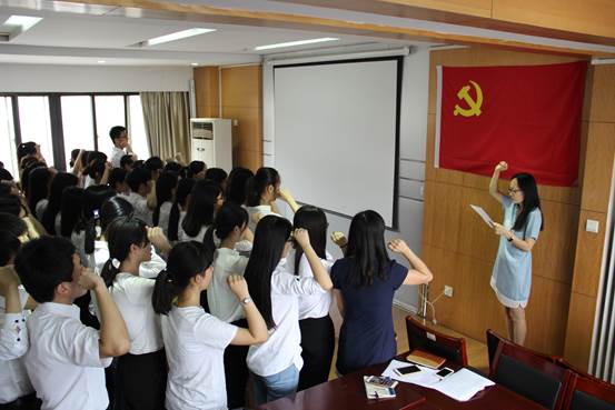 (通讯员:王元、李冰封)为庆祝中国共产党成立95周年,深入开展“两学一做”教育活动,进一步激励党员坚定爱党、信党、跟党走的理想信念, 天游ty8检测中心官方登录各教职工党支部、学生党支部相继于舜耕、圣井校区会议室举行了预备党员入党宣誓和重温入党誓词仪式。全体正式党员、预备党员参加了仪式。
