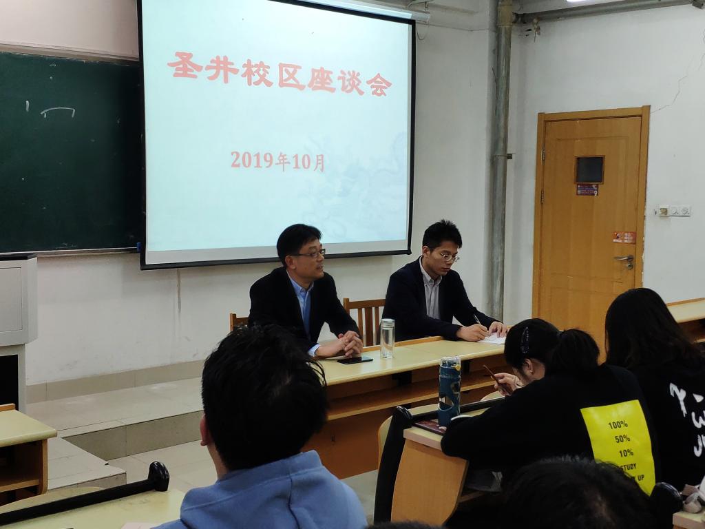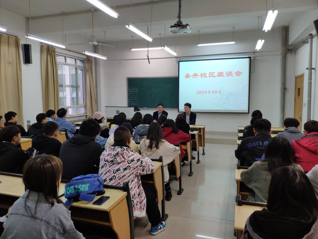 10月16日下午,天游ty8检测中心官方登录党委书记姜伟到圣井校区召开调研座谈会,圣井校区2017级、2018级学生代表参加,会议由2017级辅导员朱海林主持。
