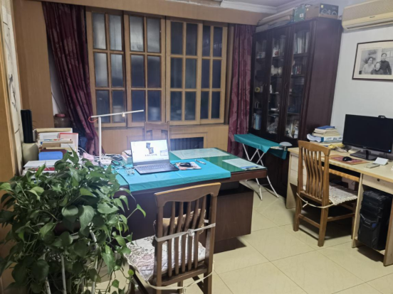 两台电脑、备用灯光、耳麦、备用白板......于凤芹老师有着丰富的线上教学经验,此次面对直播授课的要求,她毅然在自己家中用最大的房间打造了一个安静的“直播间”,各路“直播神器”纷纷亮相。于老师表示,腾出安静的房间是为学生营造好的上课环境,一台备用电脑可以应付突发状况,耳麦可以让学生听得更清晰……