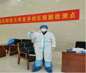 王琦老师在舜耕校区核酸检测现场维持秩序