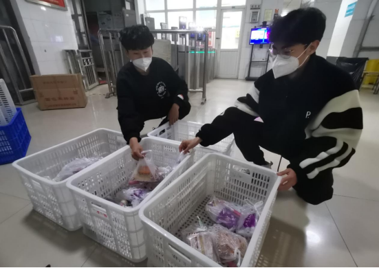 2020级矫宇航和刘嘉政同学一边认真参加网课学习,一边作为志愿者积极参与抗击疫情服务工作。他们连续三天给1号楼1538名男生送一日三餐,经常晚上8、9点钟才能匆匆吃上几口饭,半夜还在统计明天用餐需求,第二天早晨依然按时参加网课学习。