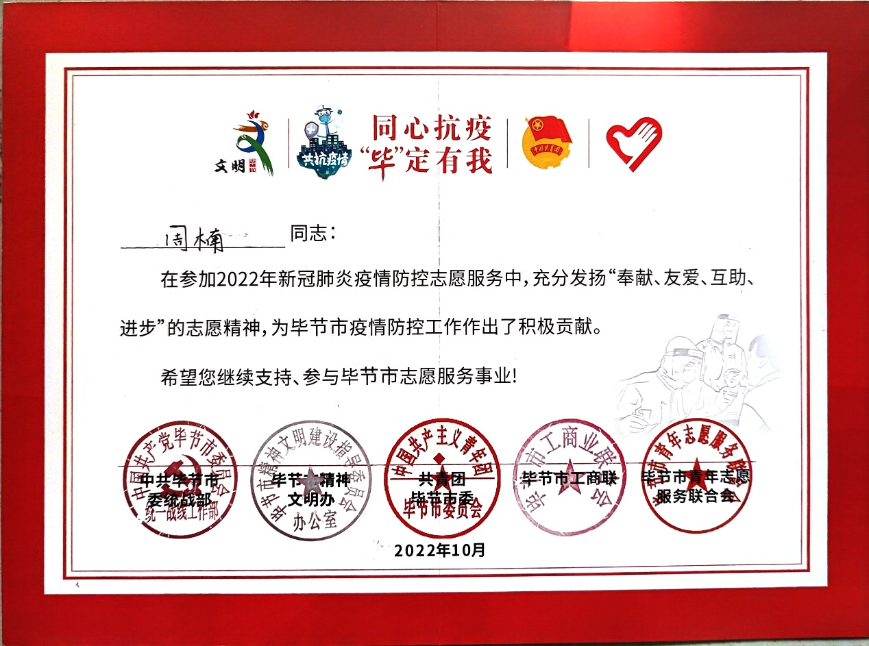 疫情期间,他积极参与志愿活动,承担防控任务,包括抗原检测、核酸筛查、走访排查等,累计工作三十余次,服务群众6000余人。2023年暑假周楠在银行实习期间突降暴雨,率先肩扛沙袋堵住漏水处并获银行方致谢信。此外,2016年至今,周楠共献全血13次,累计献血5200cc,获“全国无偿献血铜奖”;累计参与志愿服务千余小时,获评国家级、省级荣誉30余项,事迹曾获中国青年报、山东省教育报等媒体报道。