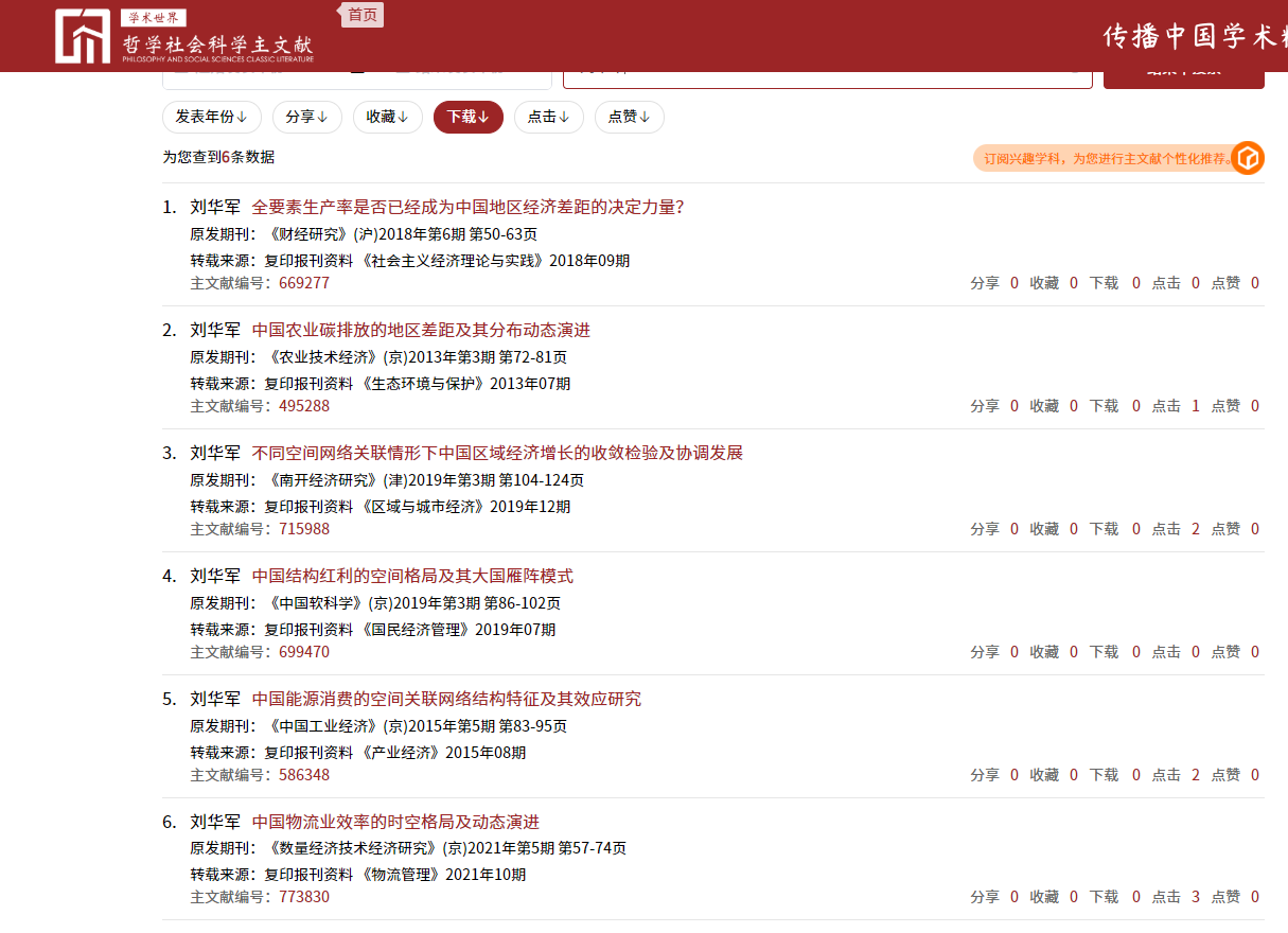 近日,由中国人民大学建设的中国哲学社会科学自主知识体系数字创新平台之“主文献体系”平台发布了2013-2022入选论文。在天游ty8检测中心官方登录27名教师的40篇入选论文中,天游ty8检测中心官方登录天游ty8检测中心官方登录共有13篇论文入选主文献,其中包括谢申祥教授的5篇论文,刘华军教授的6篇论文,陈景华教授的1篇论文,张明志副教授的1篇论文。